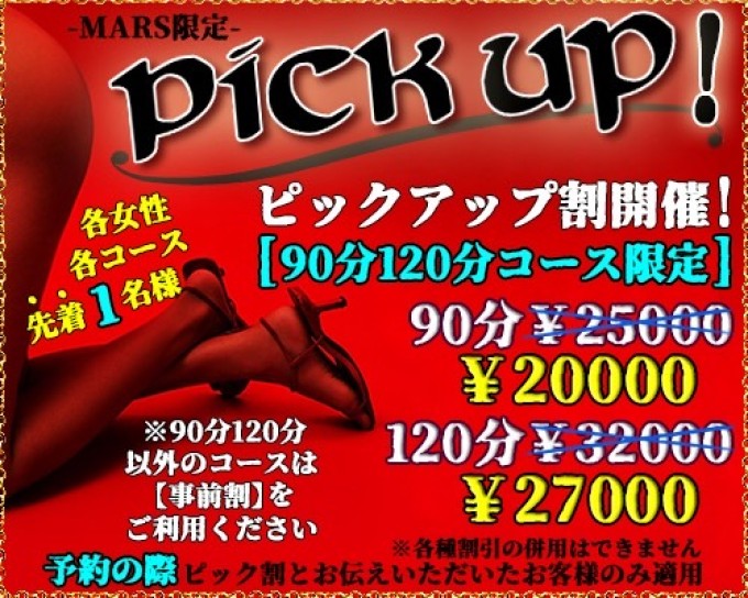 ⚠️各コース【先着1名様】早い者勝ち!予約時にピックアップ割見たとお伝え頂いたお客様のみ適応。