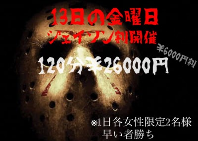 各女性限定2名様、早いもの勝ち!! ※予約時に【ジェイソン割】見たとお伝え頂いたお客様のみ適応。