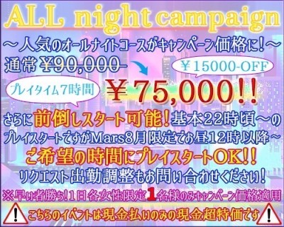 【ALL★COURSE割】 全てのコース時間が割引対象!!1日各女性限定3名様 早い者勝ち!