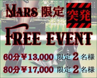 7日(月)限定、MARS店舗限定【Free event】開催!! ドアを開けたら誰が来るかお楽しみ 超お得価格 先着4名様のみ 是非、ご利用下さいませ