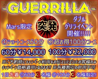 月に4回のみのプレミアイベント 11日(金)3月第2回目開催!!【突発ダブルゲリラ】イベント 人数限定早い者勝ち 60分14000円 OR 100分22000円 ※予約時にゲリライベント見たとお伝え頂いたお客様のみ適応