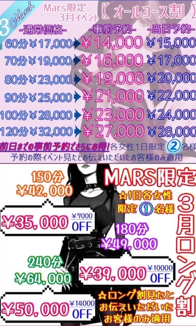 【long・long・long】 150分¥7000円割引 180分¥10000円割引 240分¥14000円割引