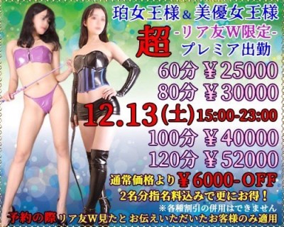 和泉女王様13時〜17時UP 天音女王様11時半〜15時半UP お早めのご予約をお願いします。 【和泉女王様】✖️【天音女王様】 先着1名様のみ早い者勝ち❗️