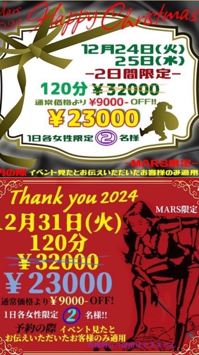 莉音女王様⚠️普段はリクエスト出勤のみですが、12月サプライズ出勤確定❗️ 11時29日(金)15時〜20時 11月30日(土)16時〜18時半 12月2日(月)4日(水)9日(月)10日(火)12日(木)18日(水) 15時〜20時 ⚠️普段時間の合わなかったお客様 チャンスです。 ⚠️MARS在籍イチの長身177センチ,ソフト〜ハードまで対応可能です。 T177B88W62H90 お早めのご予約をオススメ致します。